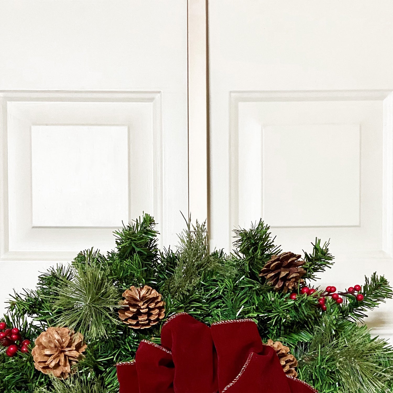 - Special pads on the back protect your door from scratches. Plus, our adjustable wreath holder comes in a variety of finishes to match your mood and style.