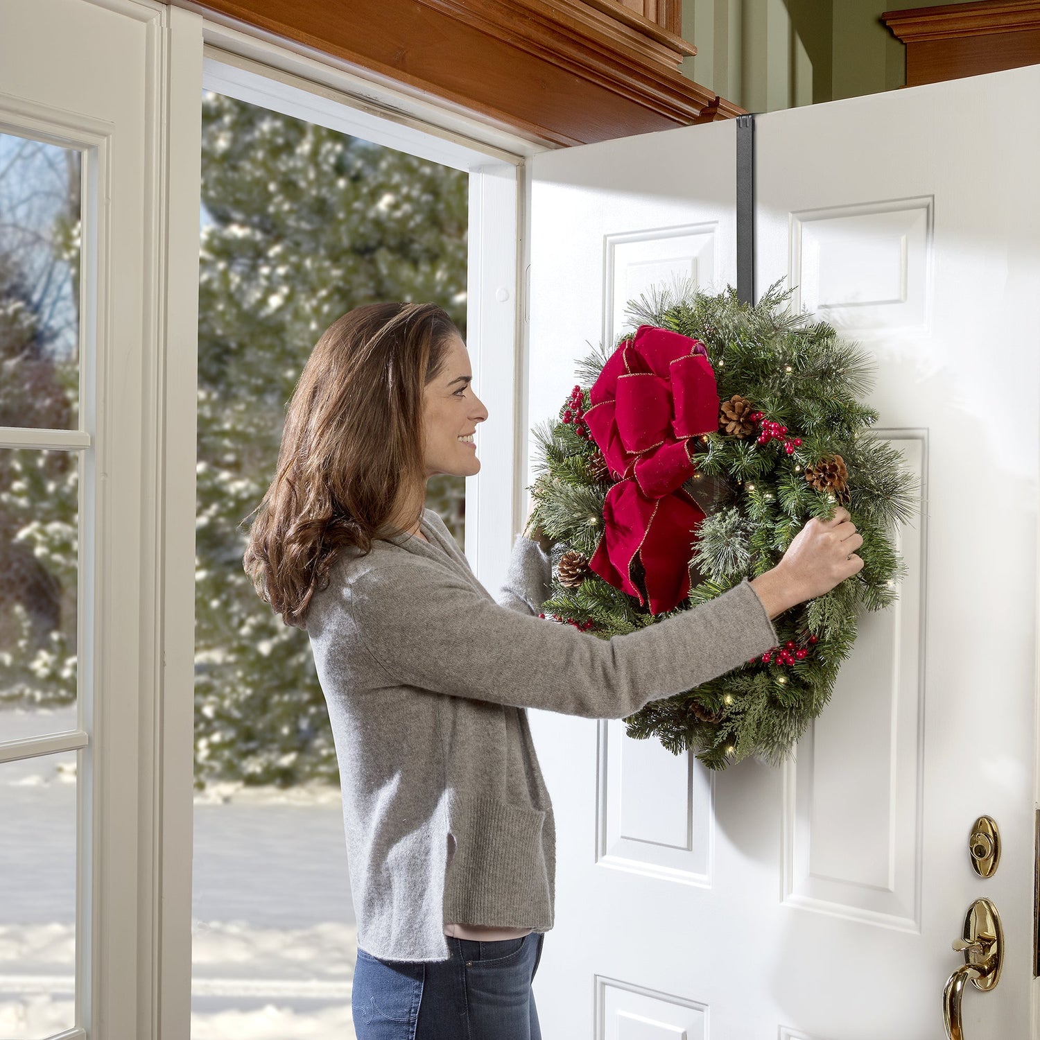 - Special pads on the back protect your door from scratches. Plus, our adjustable wreath holder comes in a variety of finishes to match your mood and style.