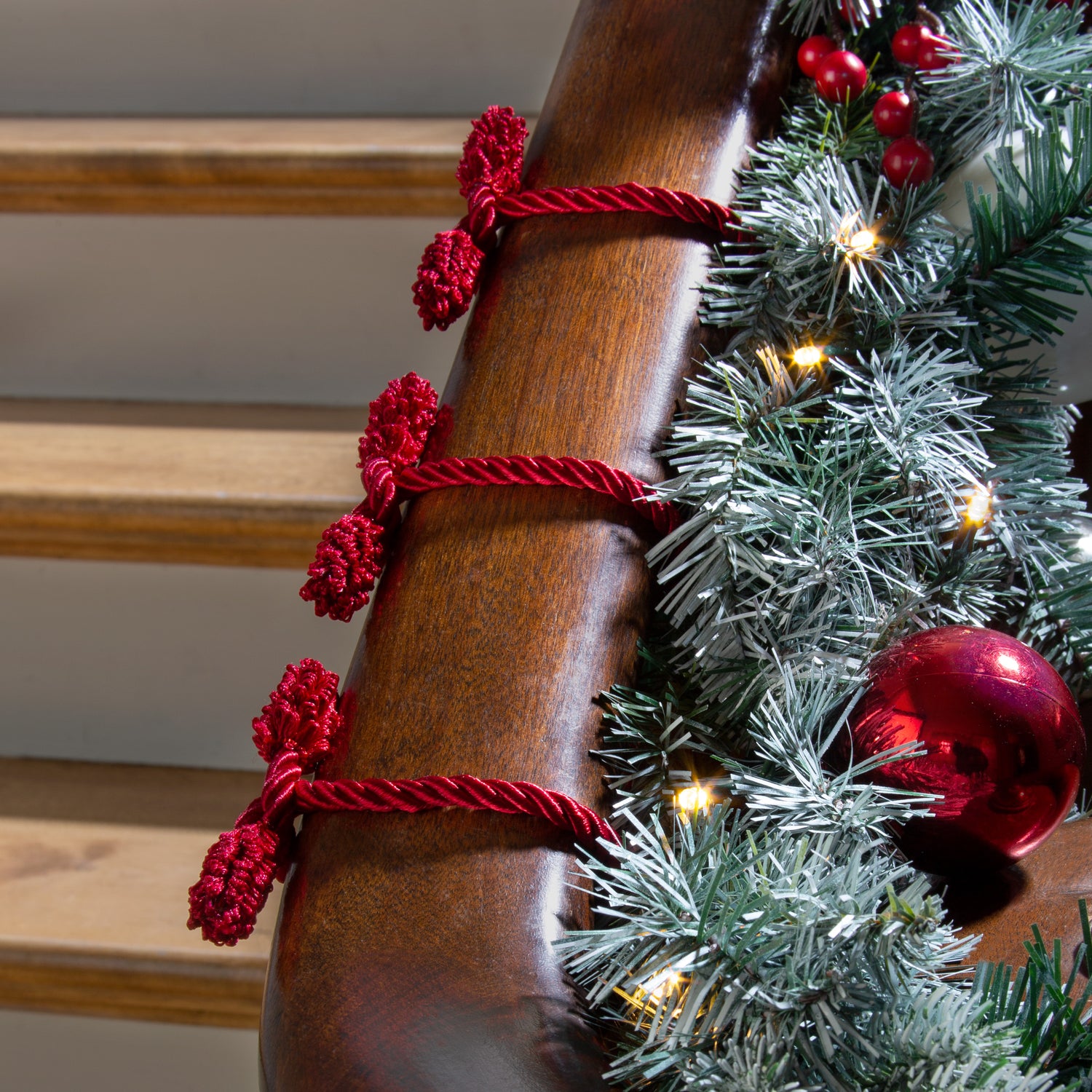 Decorative Twist Ties secure garland, lights, wreaths, stockings and other decorations with ease. These decorative rope garland ties act as a twist tie (there's a hidden wire inside). Simply wrap around your garland and twist it to secure!