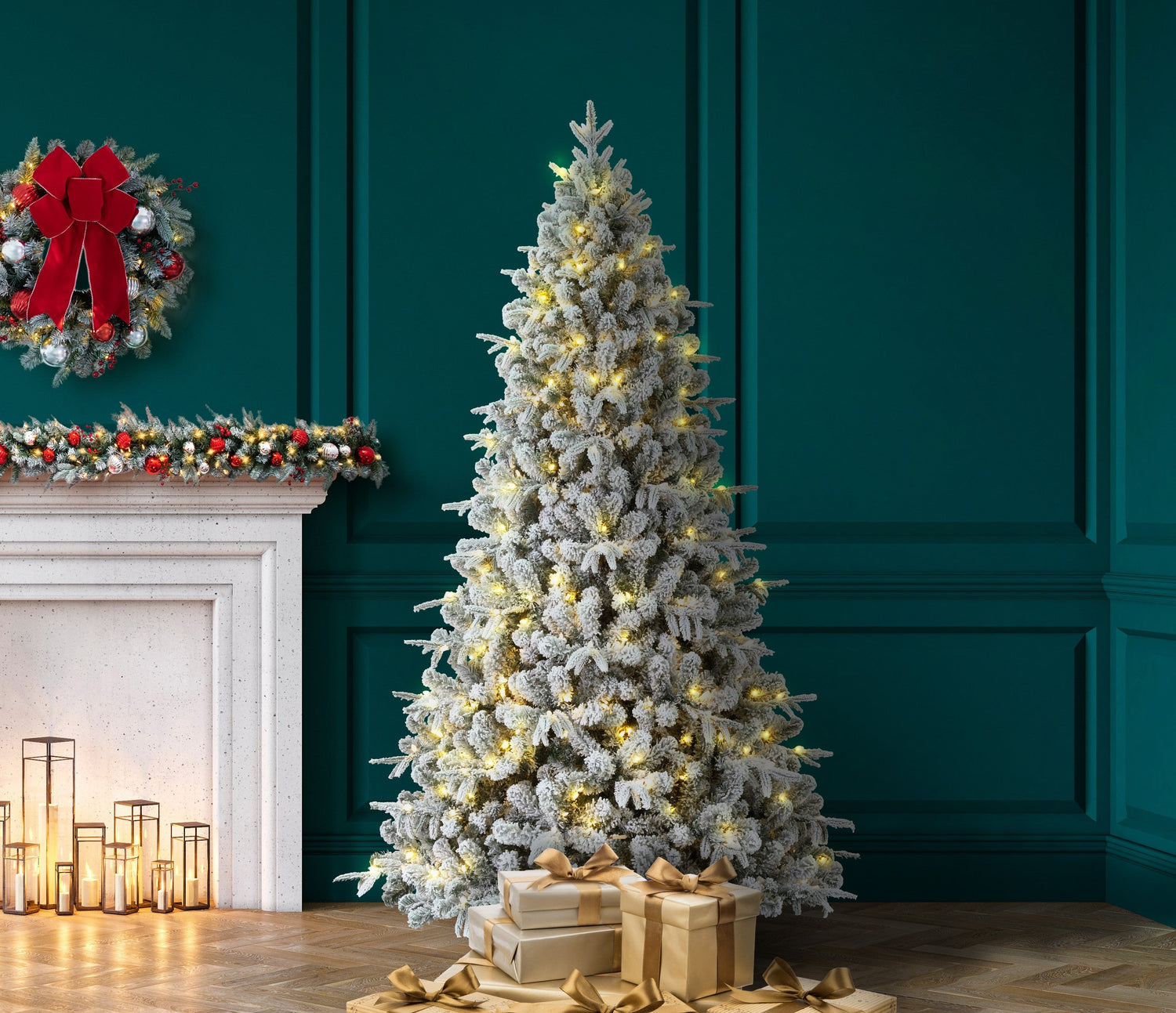 7.5 Foot Flocked Churchill Fir Tree - 8 Function Color Changing LED Lights