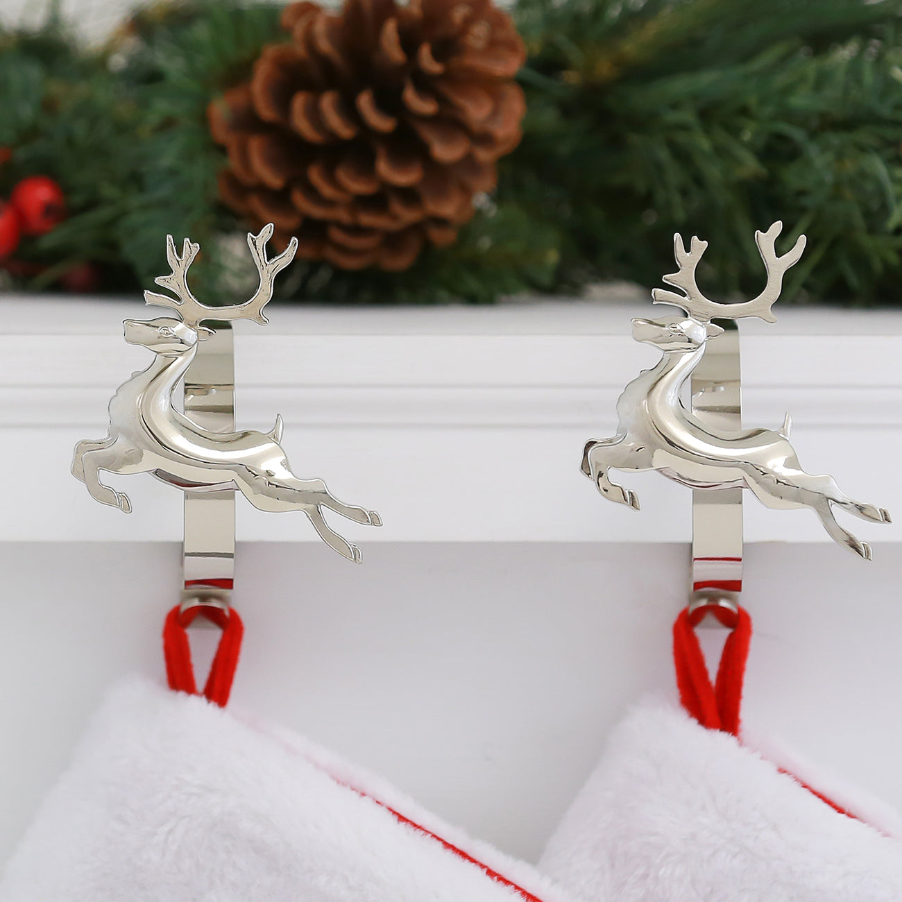 The Original MantleClip Stocking Holder with Removable Metal Holiday Icons, 2 Pack - Silver Reindeer