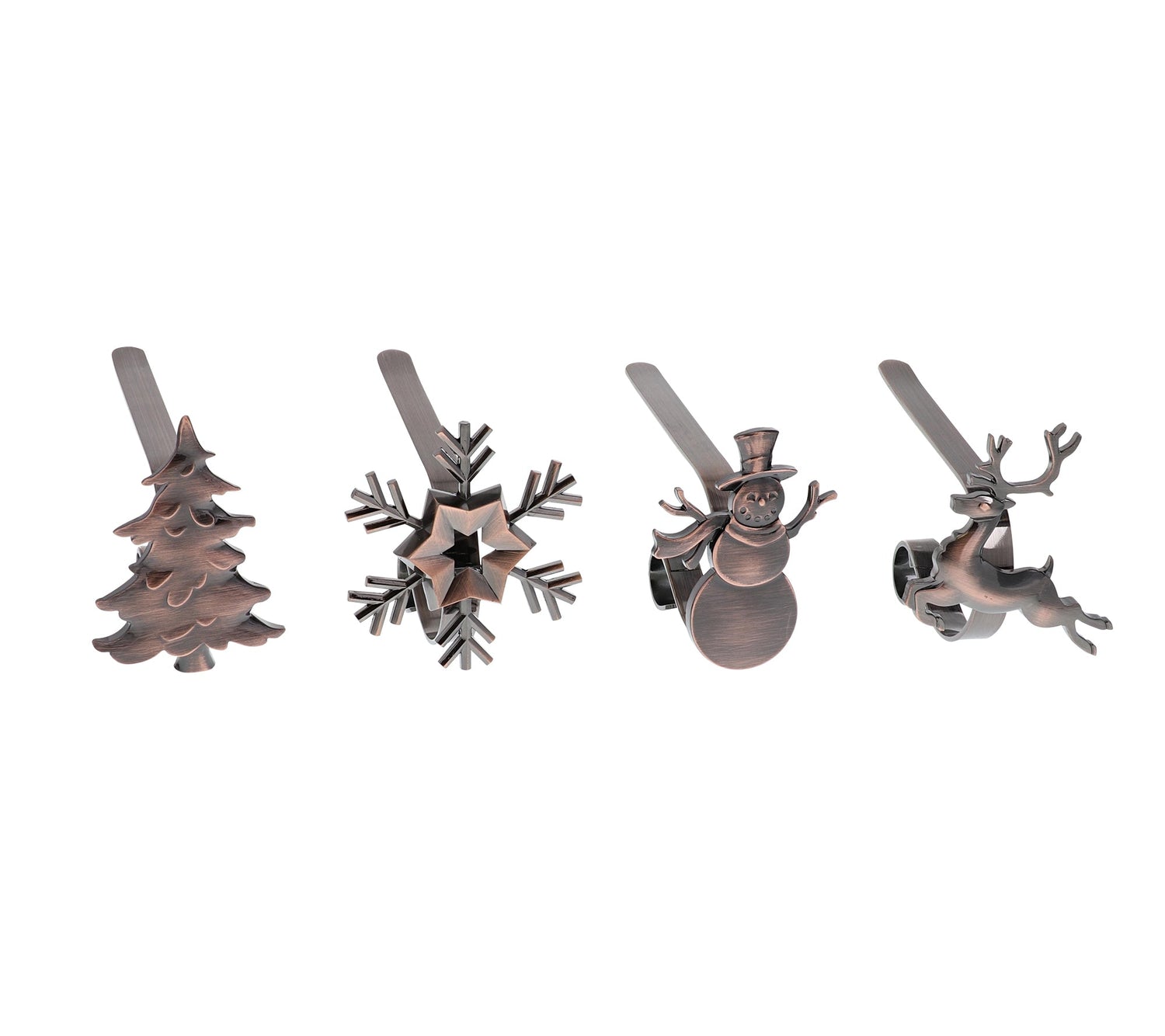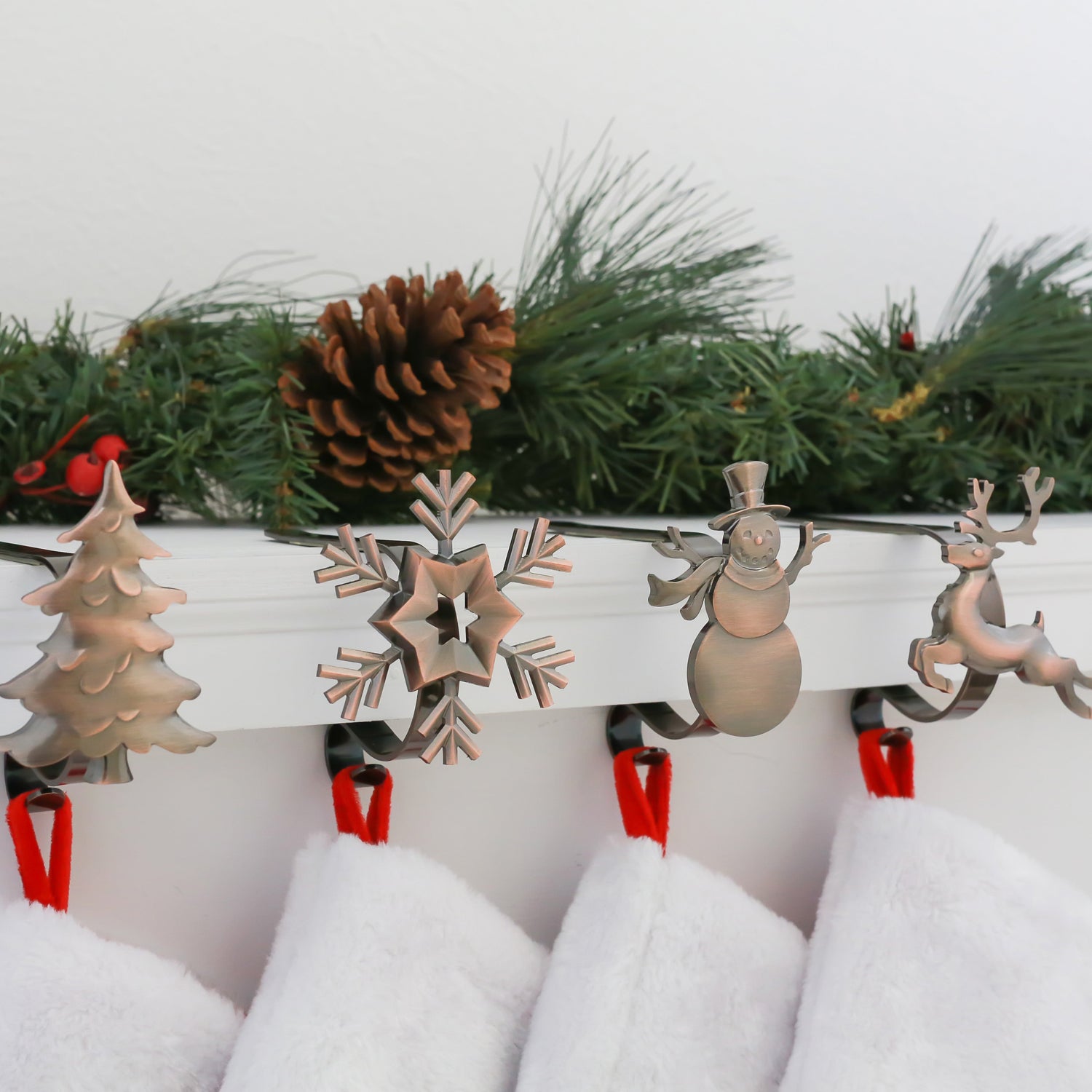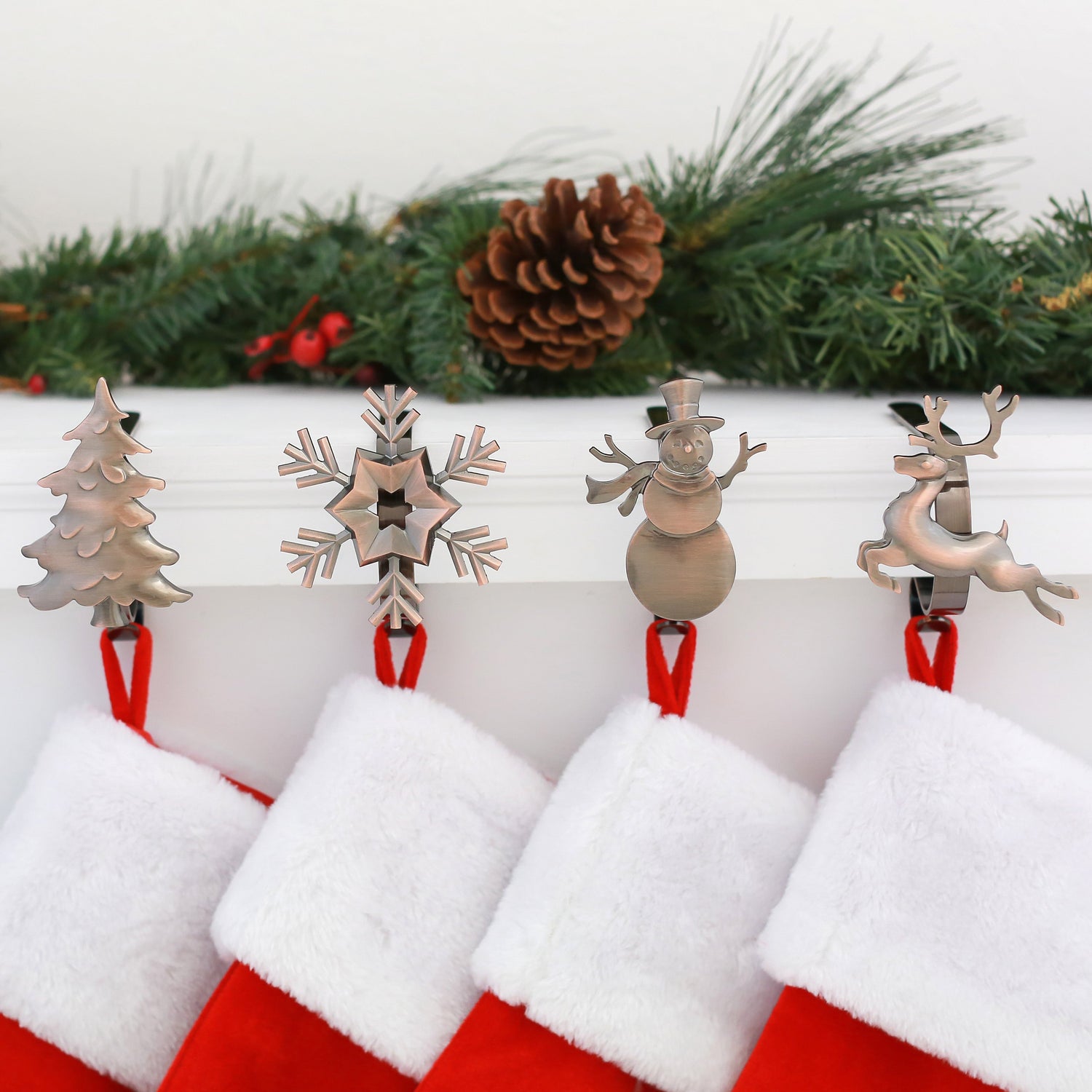 The Original MantleClip Stocking Holder with Removable Metal Holiday Icons, 4 Pack - Assorted Oil-Rubbed Bronze