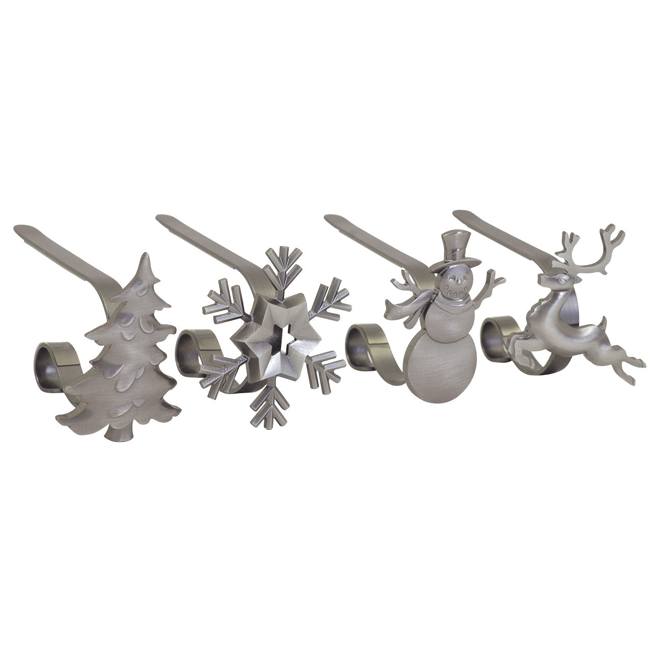 The Original MantleClip Stocking Holder with Removable Metal Holiday Icons, 4 Pack - Assorted Pewter