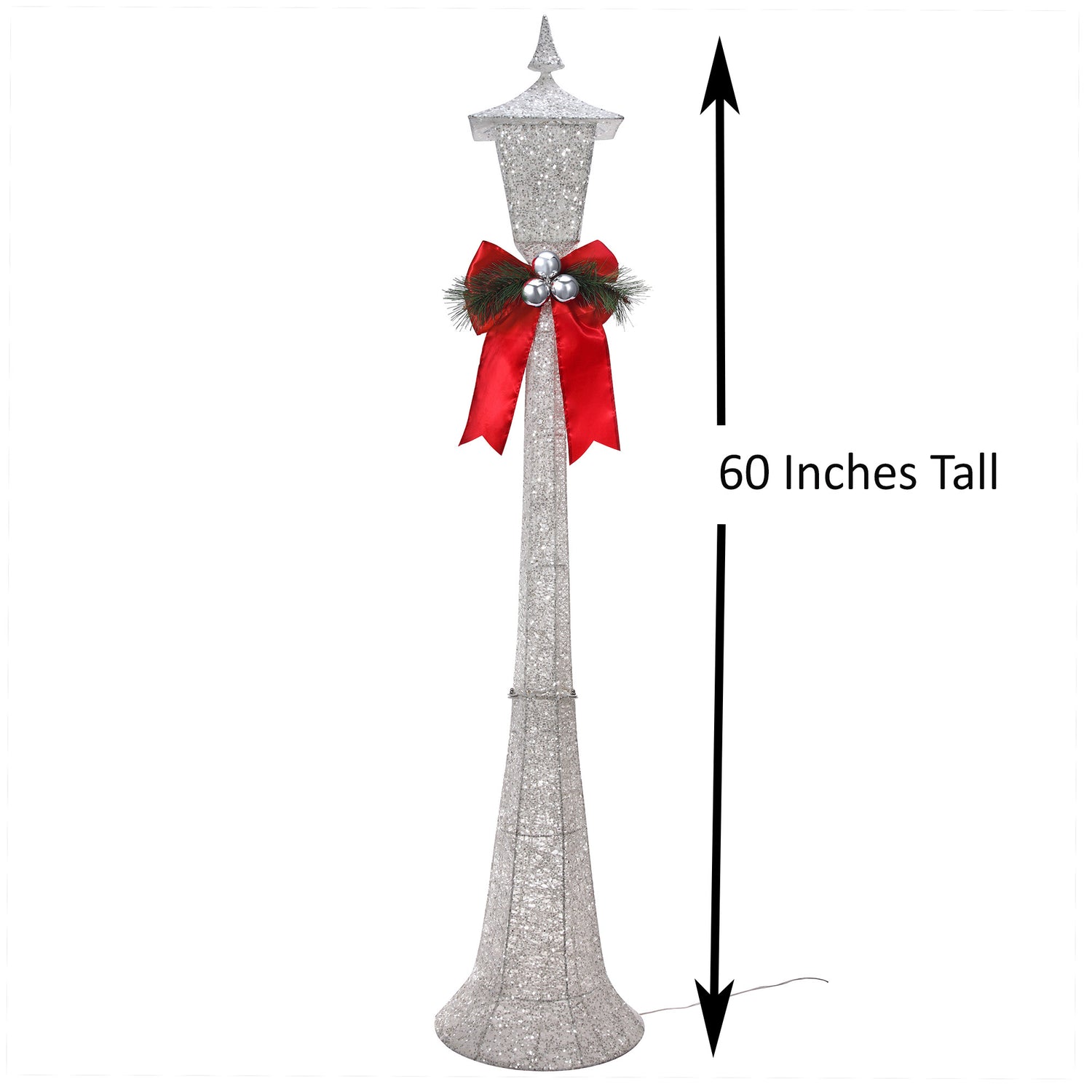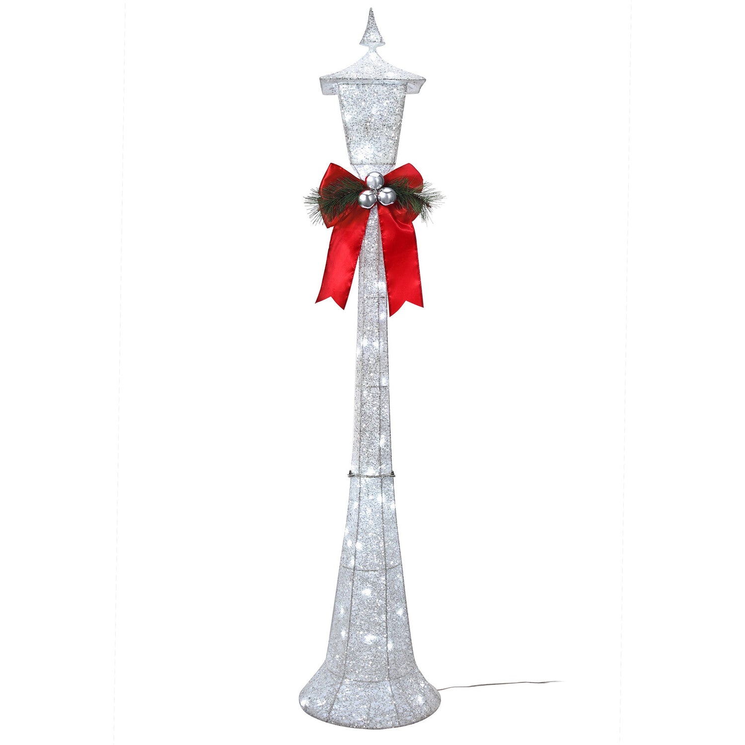 A nostalgic charming Victorian lamppost is the perfect addition to any Christmas or holiday scene! Constructed of a durable white metal frame with silver sequins and glitter. Lit with 100 white LED lights making a beautiful wintery scene at night.