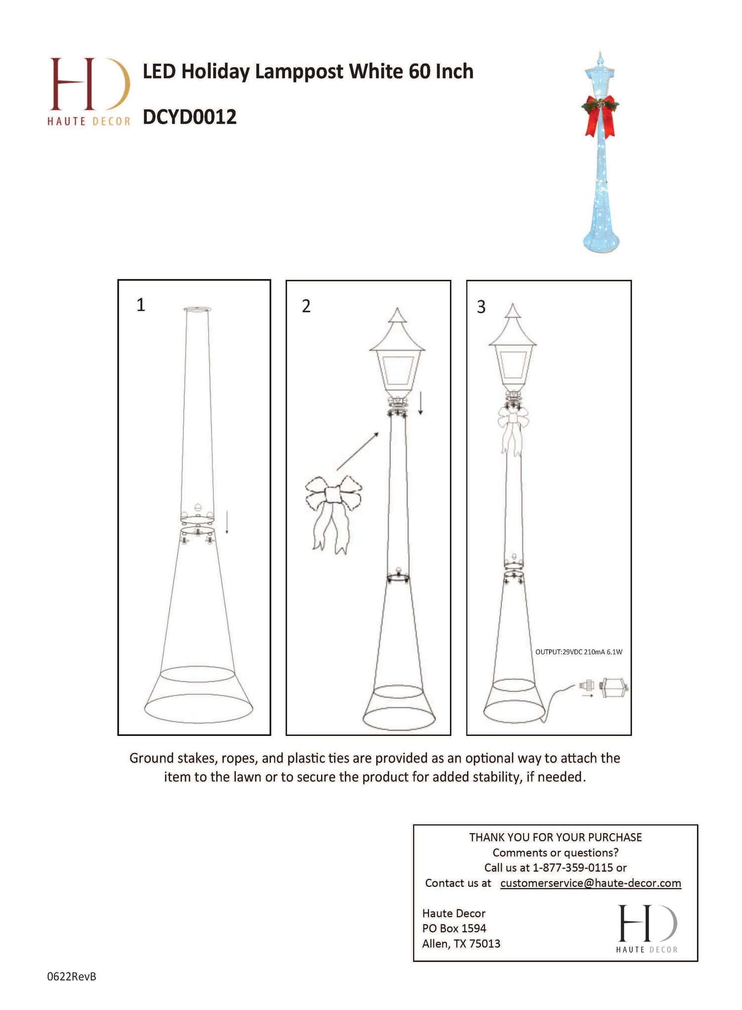 60 Inch Tall White Lamppost with LED Lights for Indoor or Outdoor Use is backordered and will ship as soon as it is back in stock.