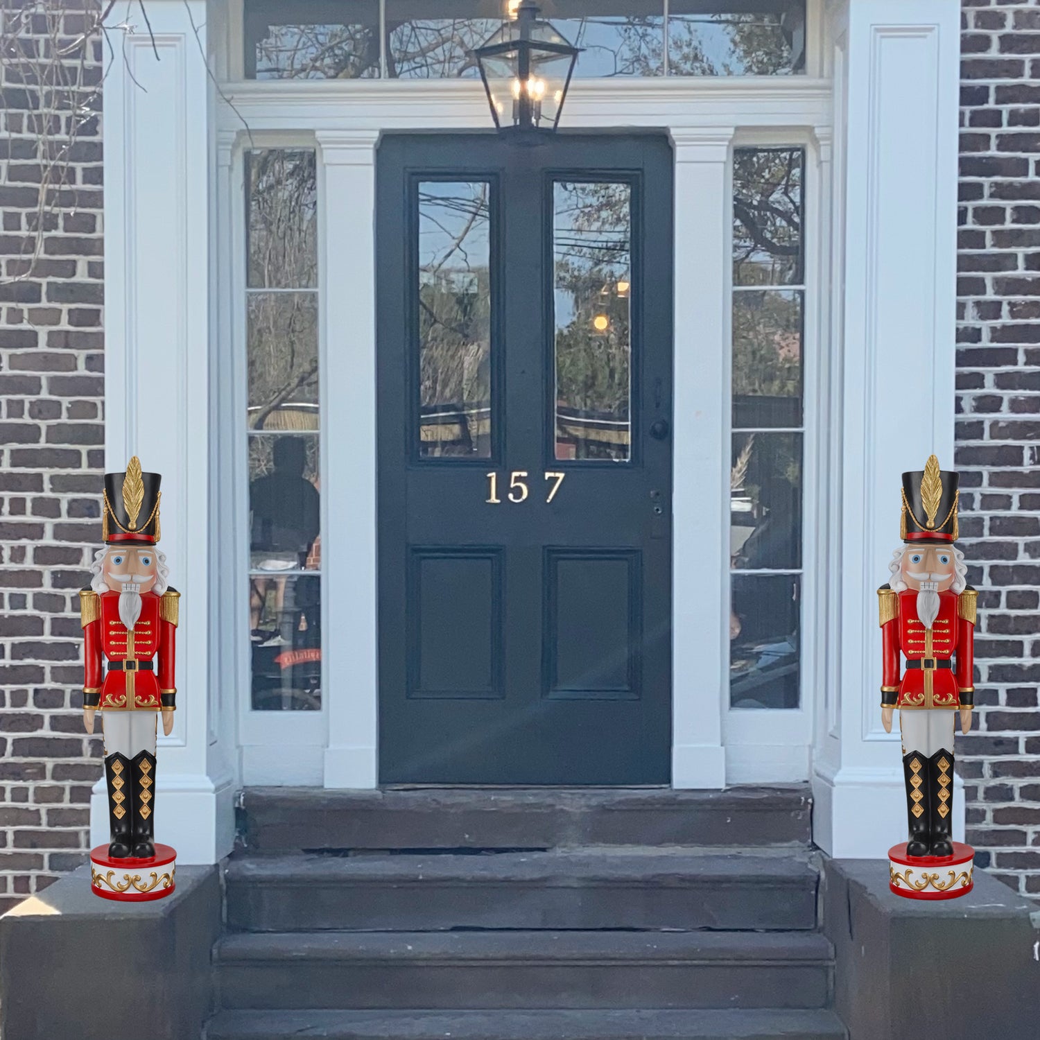 Free Shipping A Christmas nutcracker is the perfect addition to any festive holiday scene. Suitable for indoor or protected area outdoors, this nutcracker will make any entrance regal and inviting Comes pre-assembled, simply place a single nutcracker near a door, entry, staircase, or fireplace or double them up for a truly regal look