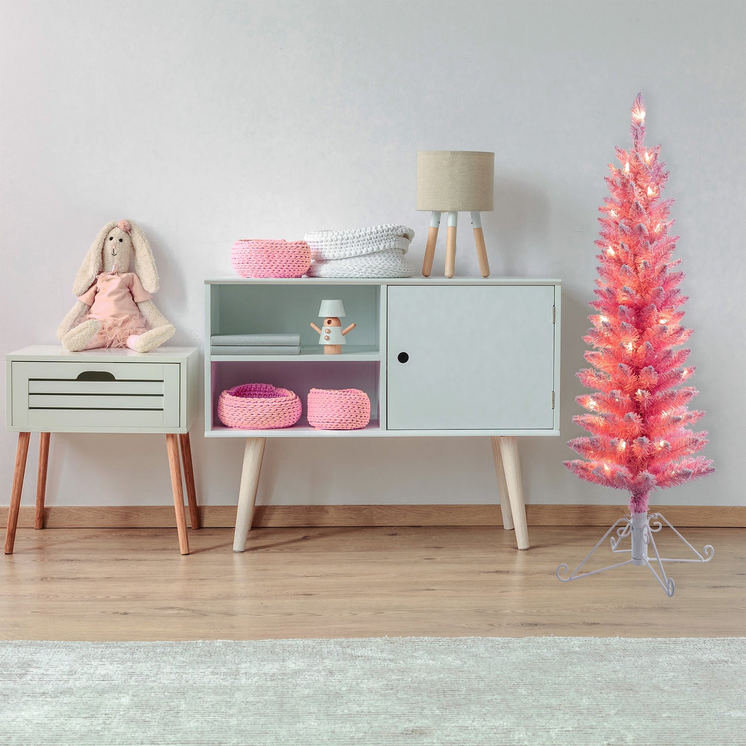 4 Foot Prelit Pink Cotton Candy Flocked Fir Christmas Tree
