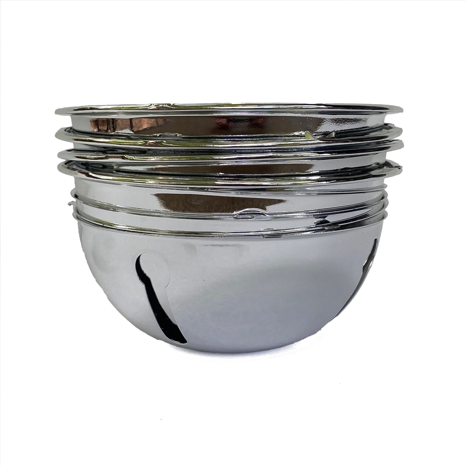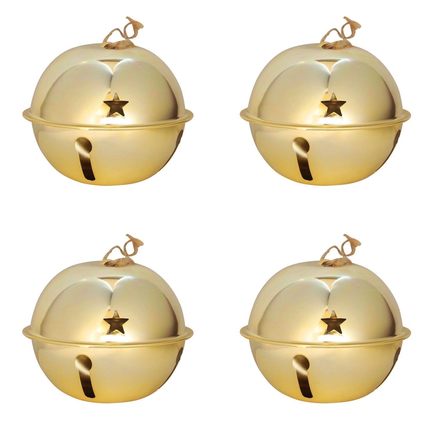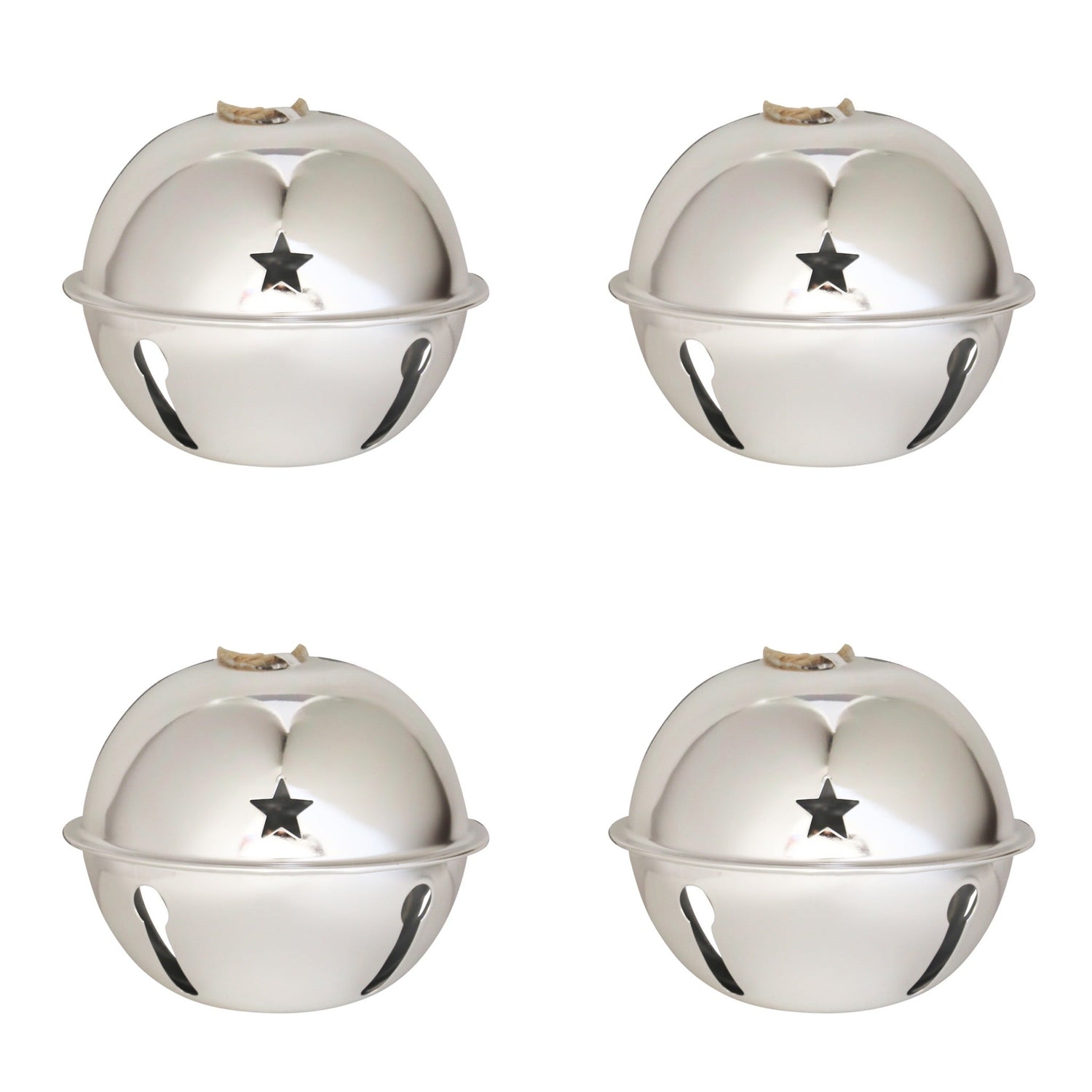 Add some shiny joy to your holiday season with these extra large jingle bell ornaments. They twist open so you can hide a present inside, or simply store them compactly after the season. Hang them on your Christmas trees indoors or outdoors. Available in shiny gold, silver, and red colors, they are sure to create smiles. Each bell measures 120mm (4.7 inches) diameter, and includes a jingle bell clapper for authentic jingle bell sound. String attached for easy hanging and are suitable for use inside or outside use. Single color comes 4 bells per pack. Mix of 3 colors in pack of 6. Tops and bottoms of bells are interchangeable so you can create combination color bells. Bells twist open and nest for compact storage. Patent pending.