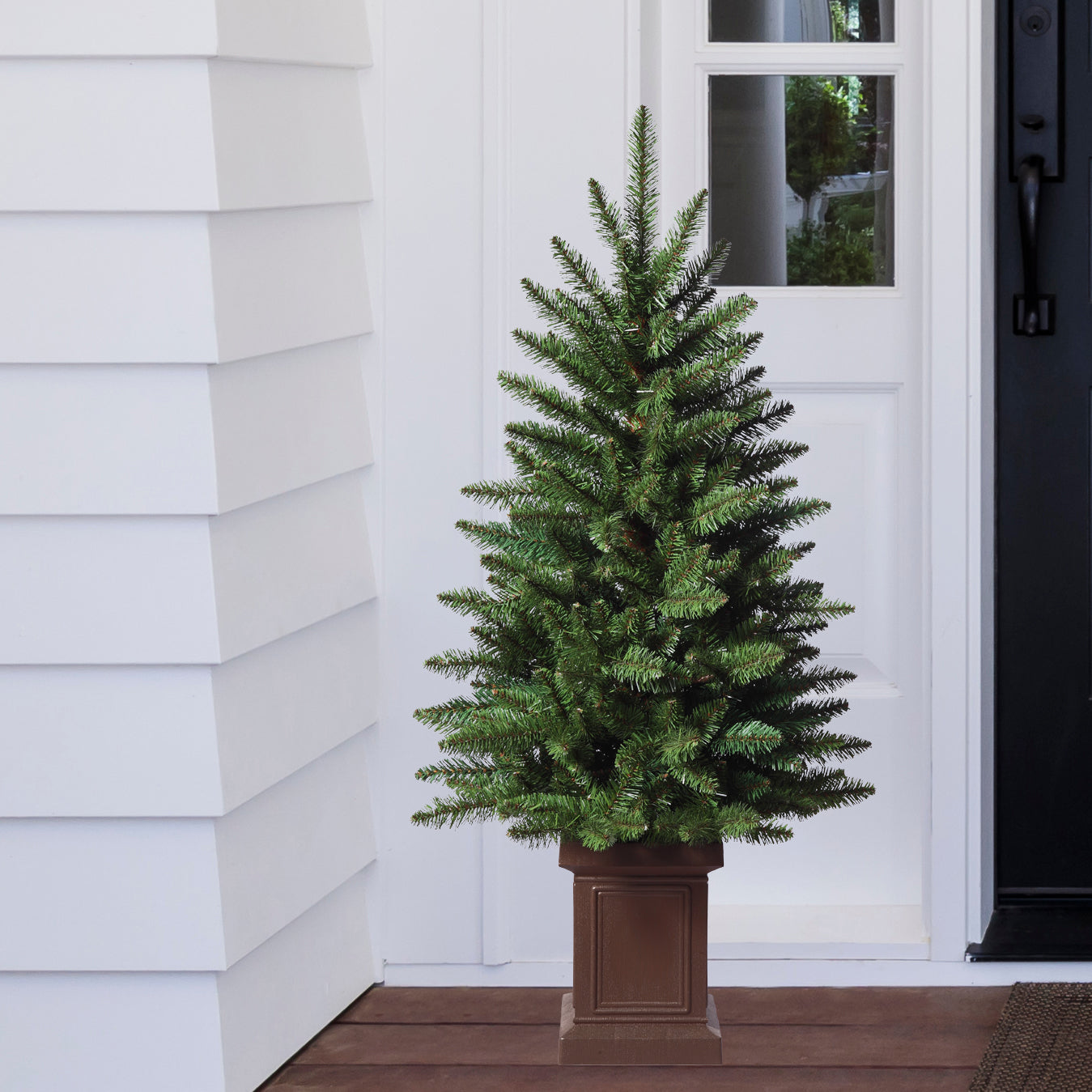 3.5 Foot Berkeley Fir Tree, Unlit in Brown Wood-Look Plastic Pot