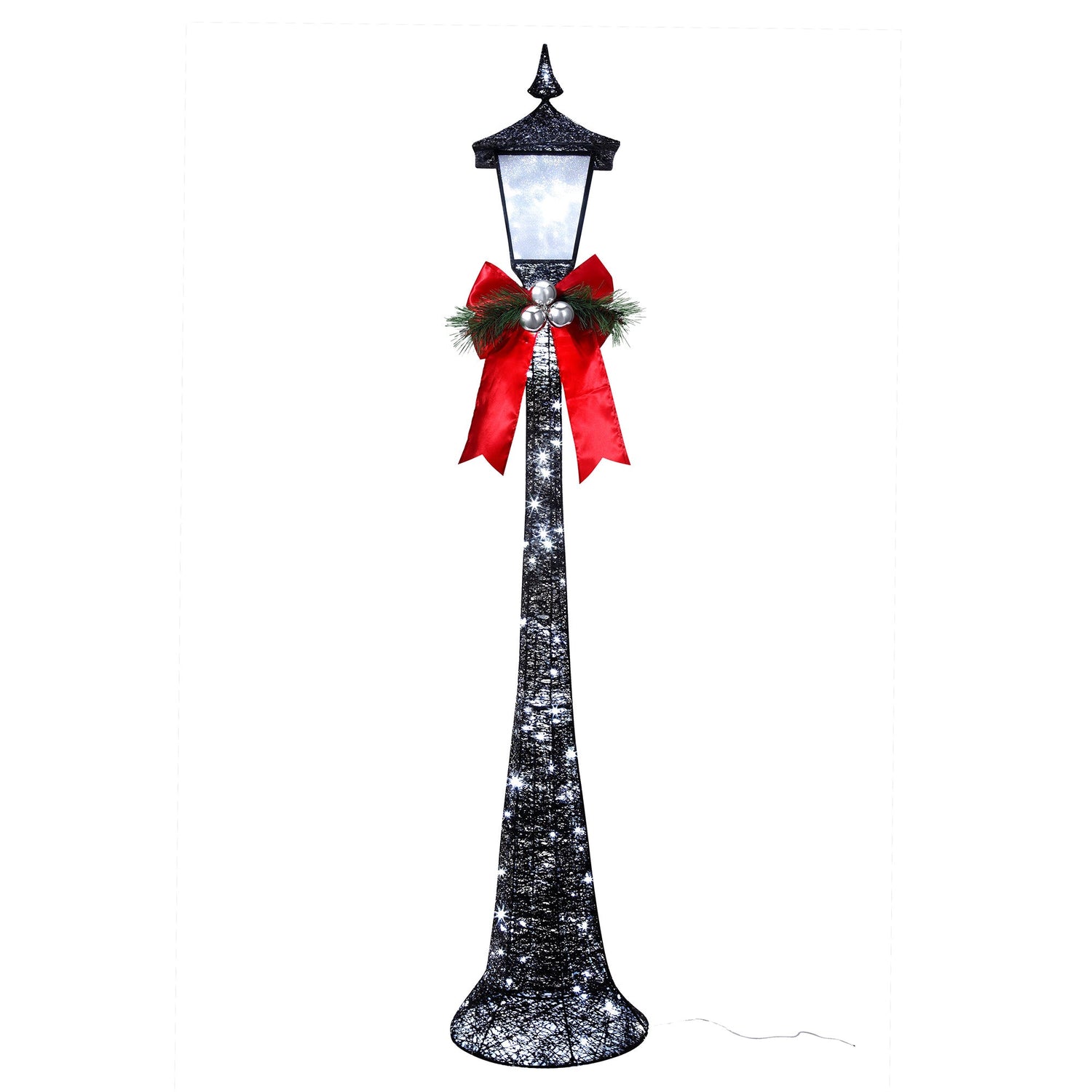 A nostalgic charming Victorian lamppost is the perfect addition to any Christmas or holiday scene! Constructed of a durable black metal frame with black sequins and glitter, the lamp has an opaque liner for a soft glow. Lit with 100 white LED lights making a beautiful wintery scene at night.