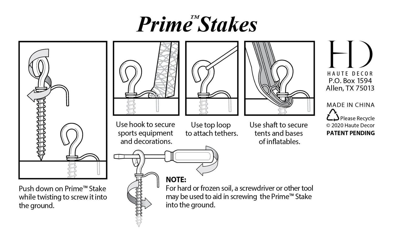Ditch regular plastic tent stakes before they bend, break and disappoint you and switch to the Prime Stake. Prime Stakes are lightweight, rust-proof and are complete with a welded collar extension to secure your equipment. This 5 inch long ground anchor is made of steel for extra durability and won't bend when twisted into the ground. Its unique twist-in design eliminates the need for a hammer to make installation quick and easy!