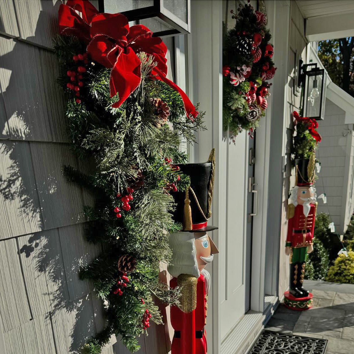 *Free Shipping* Perfect your Christmas decor with this 3 foot Classic style Pre-lit Christmas Swag This swag showcases an assortment of lush, mixed greenery, faux berries, and real pinecones. Pre-lit with 30 warm white LED lights and has a battery box that contains a built-in timer function that starts a countdown when turned on which runs 6 hours on and 18 hours off. The PVC mixed greenery comes with a green sash and a loop offering multiple ways to attach it to your exterior coach lights, lamp posts, or front door. A beautiful weather-safe dark red velvet bow is the finishing touch to this classic swag. Requires 3 AA batteries- not included. Perfect for indoor and outdoor use. Measures 16 inches long x 6 inches deep x 36 inches high and weighs 2.0 pounds.