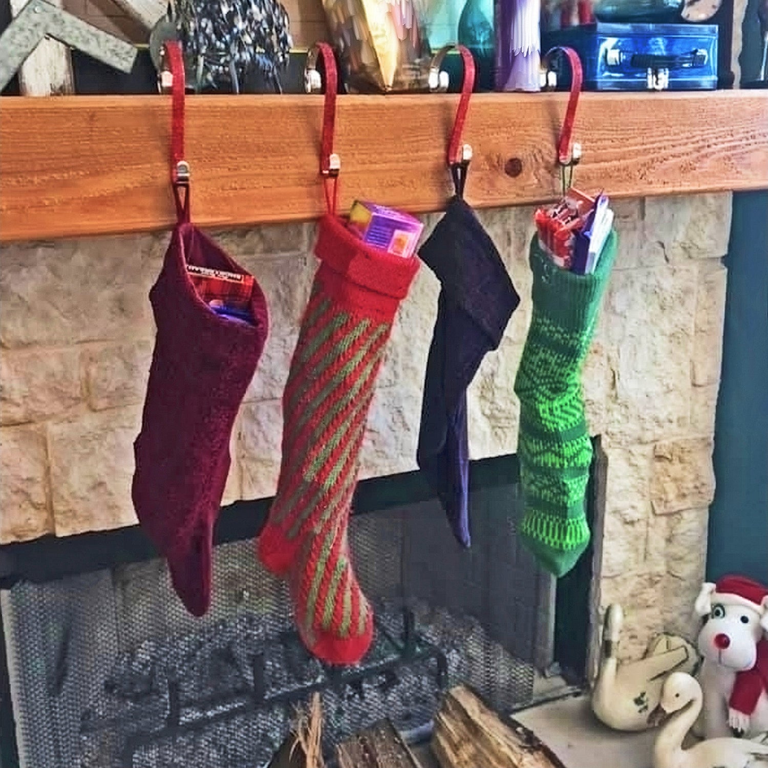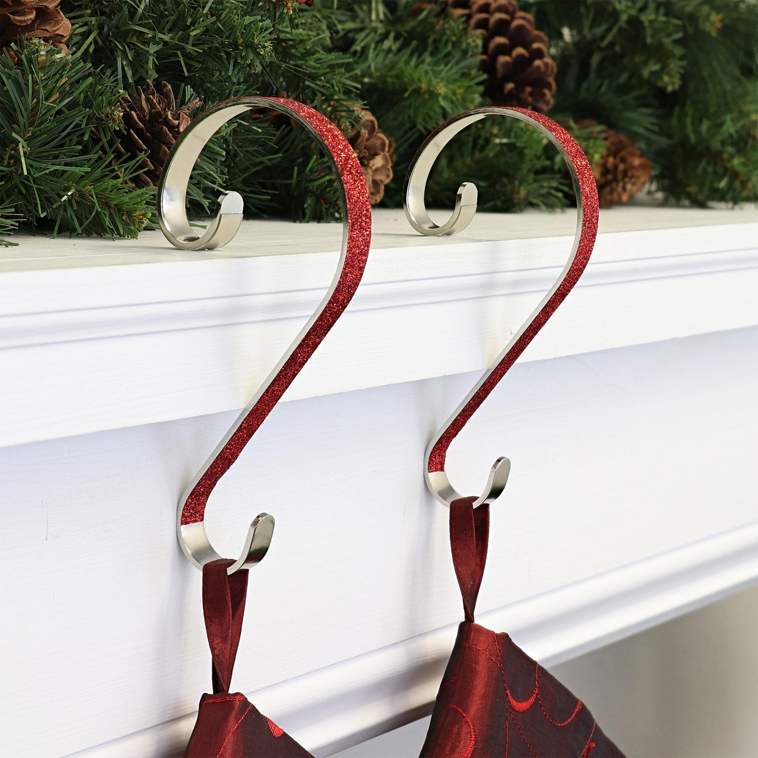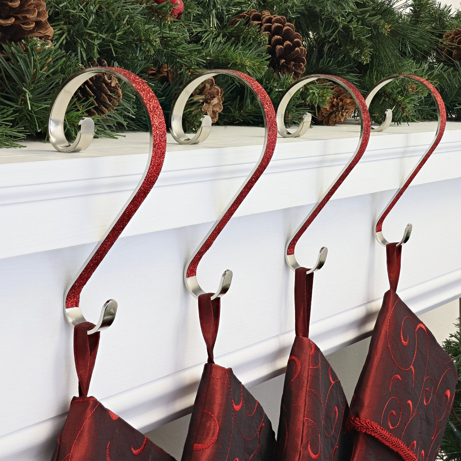 A very ornate yet also functional stocking holder, Stocking Scrolls have the capability of holding a full stocking on a wide variety of fireplace mantel styles. They have a gripper pad to prevent scratches and help hold it in place. This product's ability to swivel will allow it to fit almost any sized mantel. Lightweight design is safer for homes with children, versus heavy, counter-balance stocking holders. Won't interfere with other holiday decor on the top of mantel.