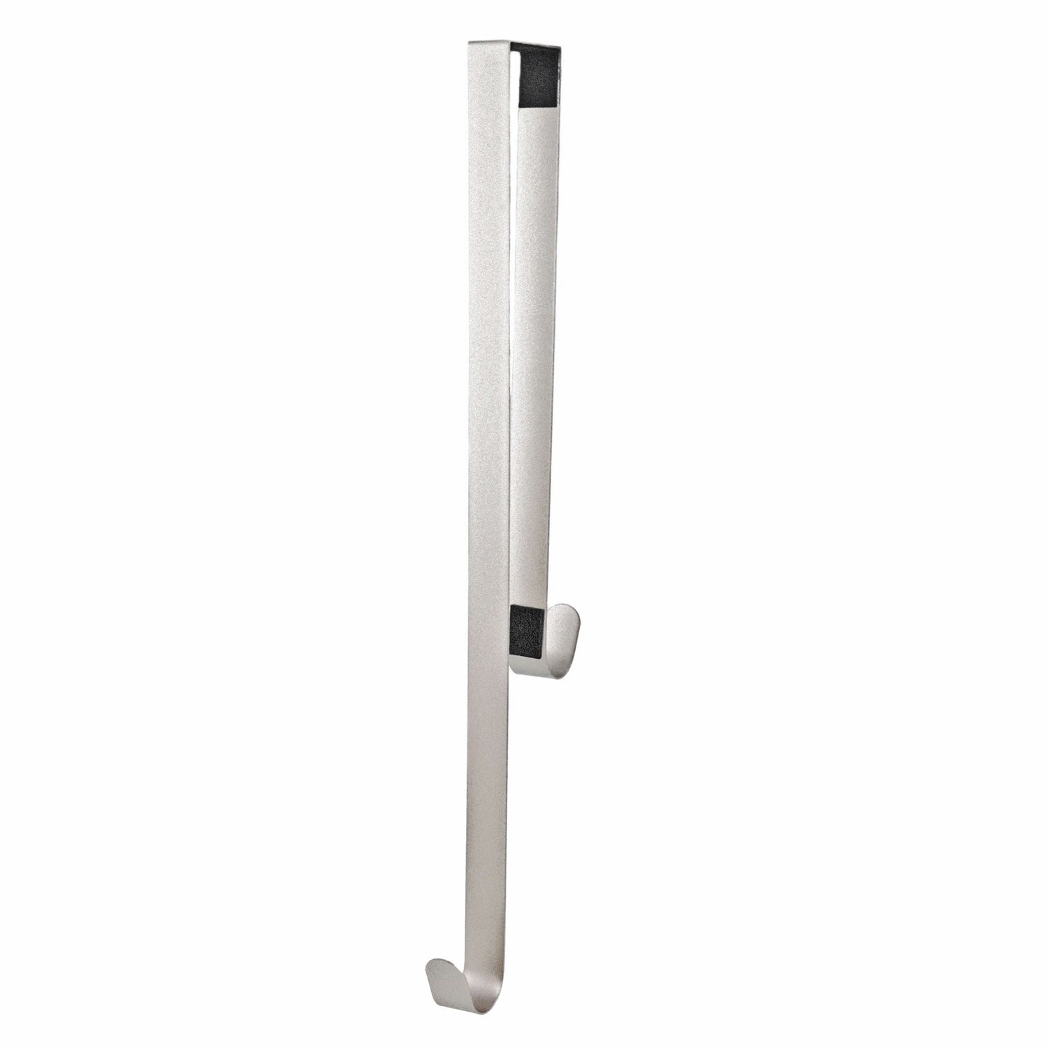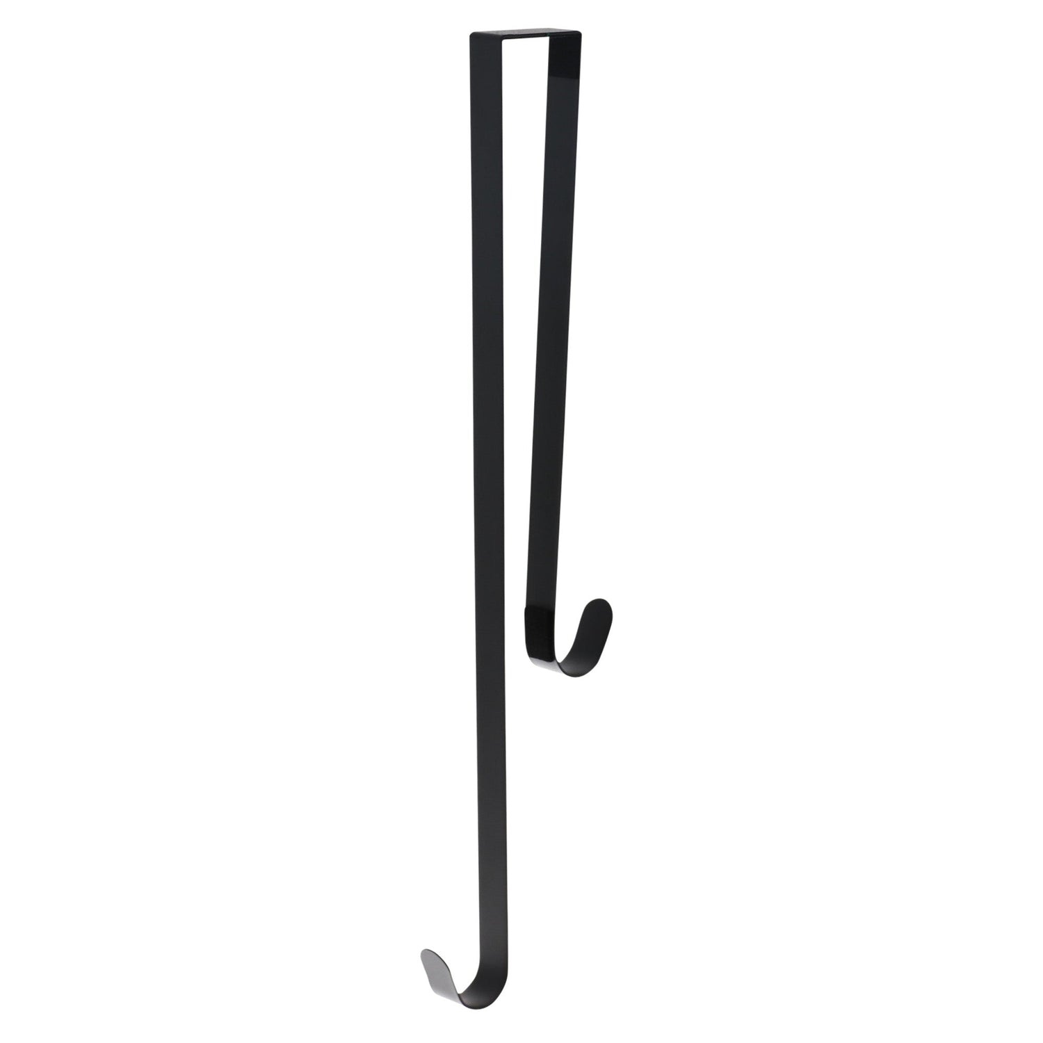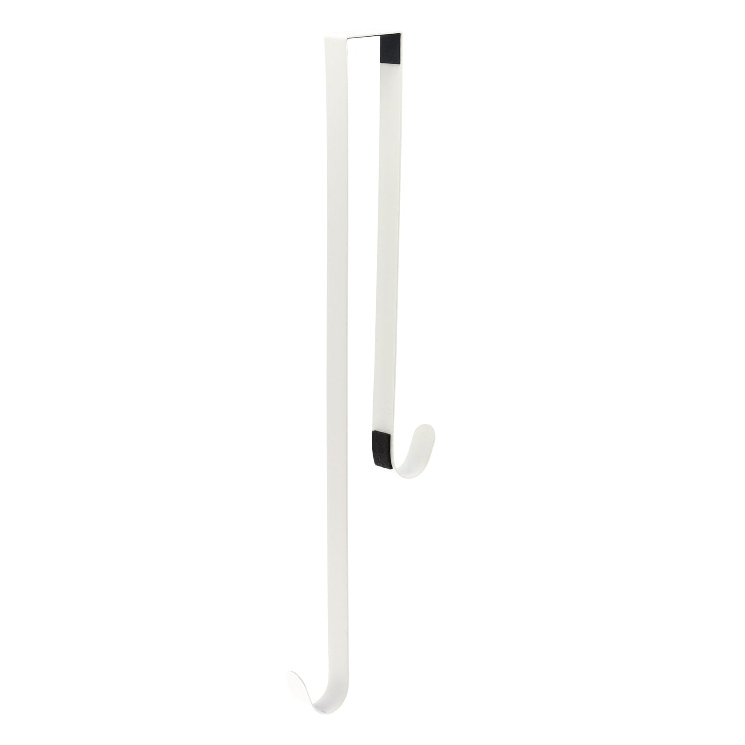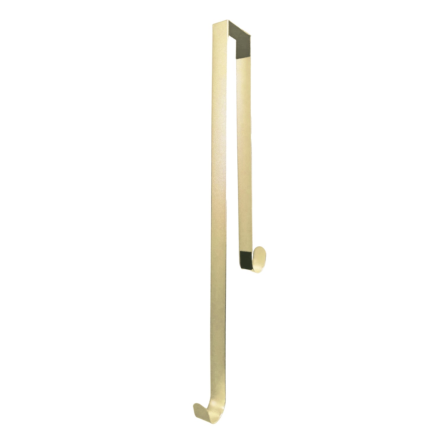 This beautifully crafted dual-sided wreath hanger allows for hanging seasonal decor on both the outside and inside of the door with ease. Pads on the back protect from scratches, and holds up to 20 pounds on both sides. 18 inches long on one side, 12 inches long on the other. Available in 5 finishes - glimmer silver, glimmer gold, matte black, matte white, and textured gold. Indoor or outdoor use.