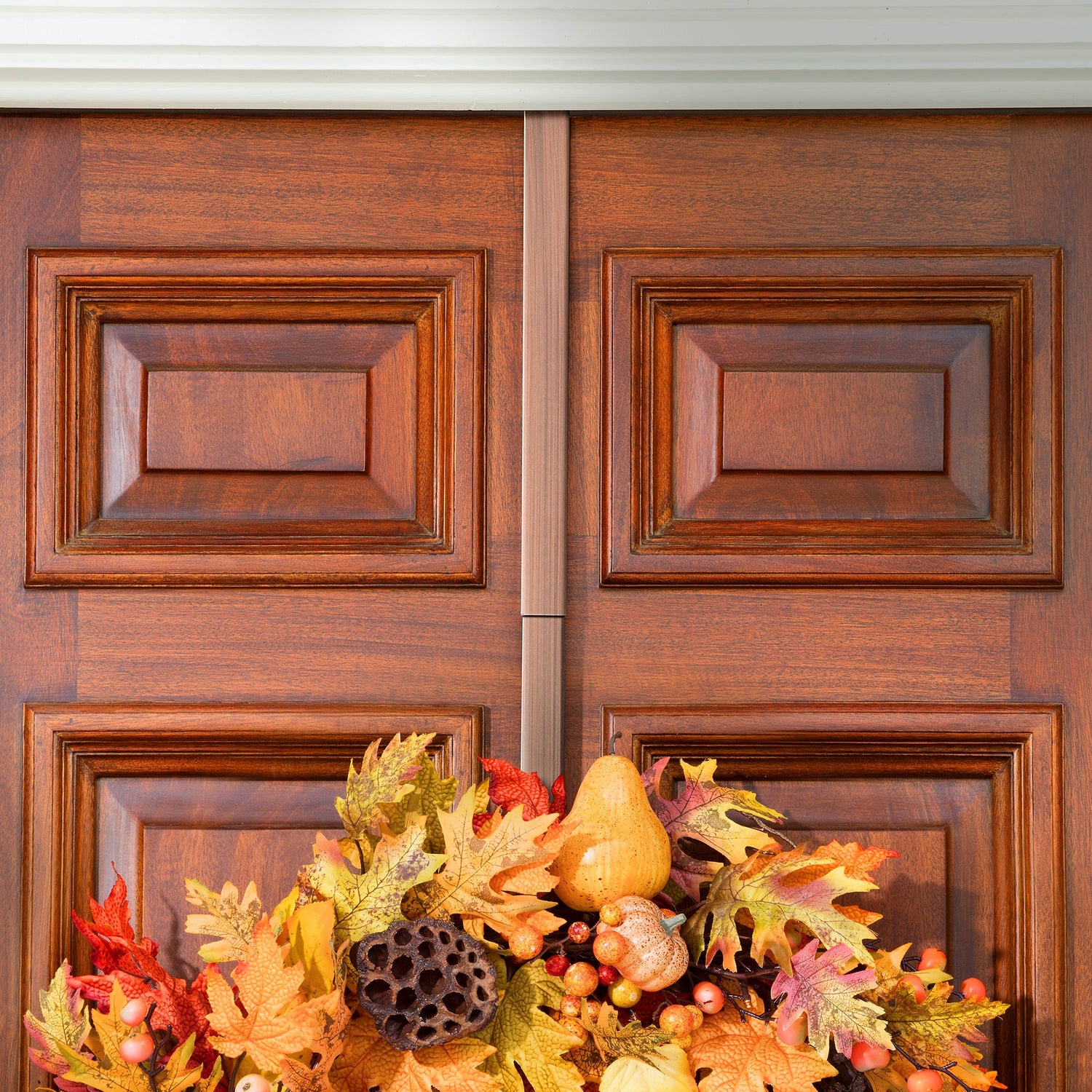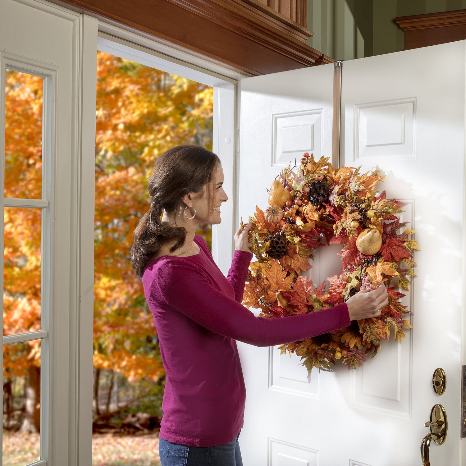 - Special pads on the back protect your door from scratches. Plus, our adjustable wreath holder comes in a variety of finishes to match your mood and style.
