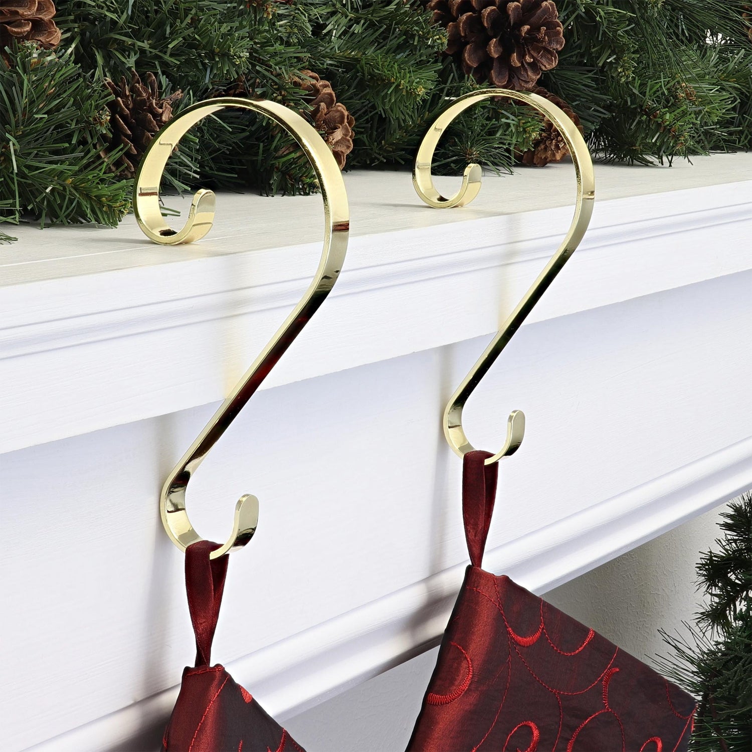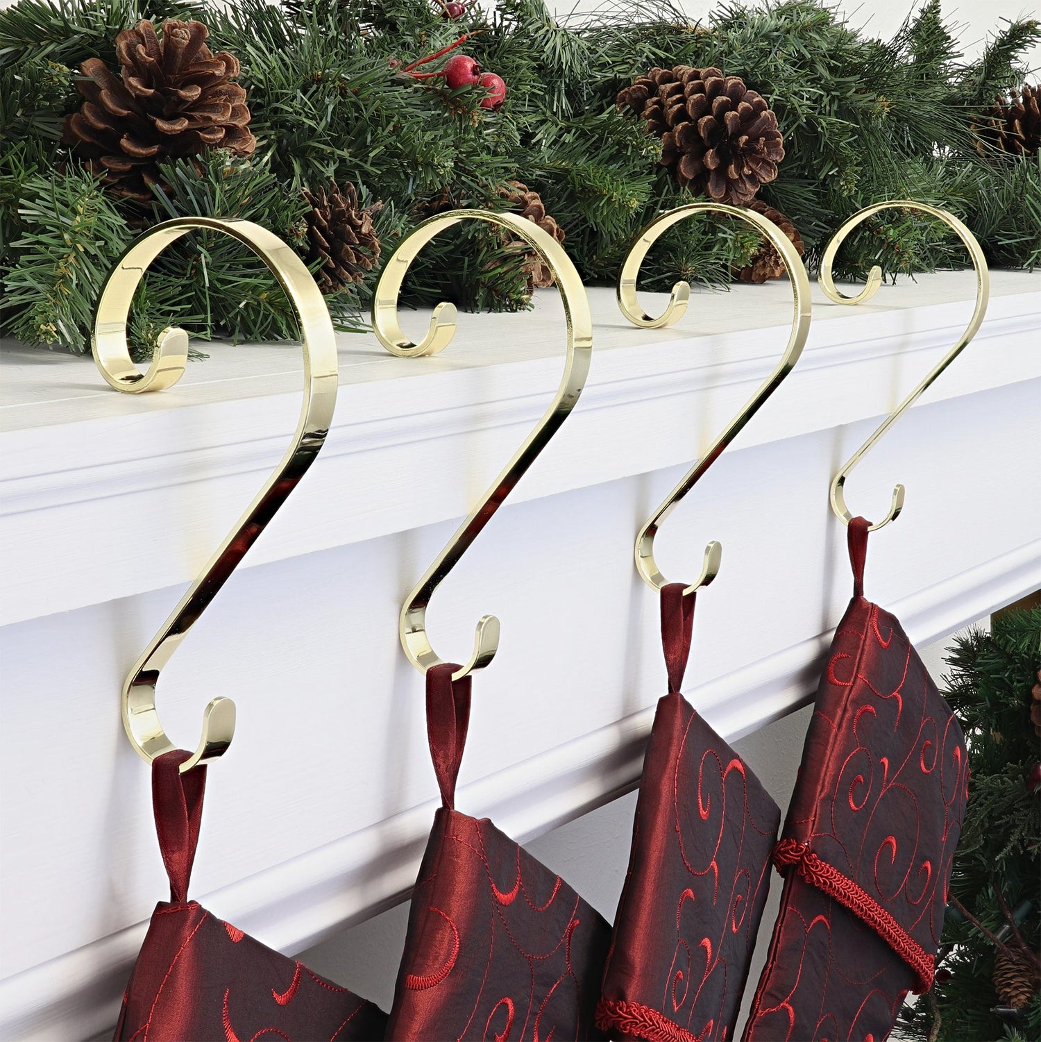 A very ornate yet also functional stocking holder, Stocking Scrolls have the capability of holding a full stocking on a wide variety of fireplace mantel styles. They have a gripper pad to prevent scratches and help hold it in place. This product's ability to swivel will allow it to fit almost any sized mantel. Lightweight design is safer for homes with children, versus heavy, counter-balance stocking holders. Won't interfere with other holiday decor on the top of mantel.