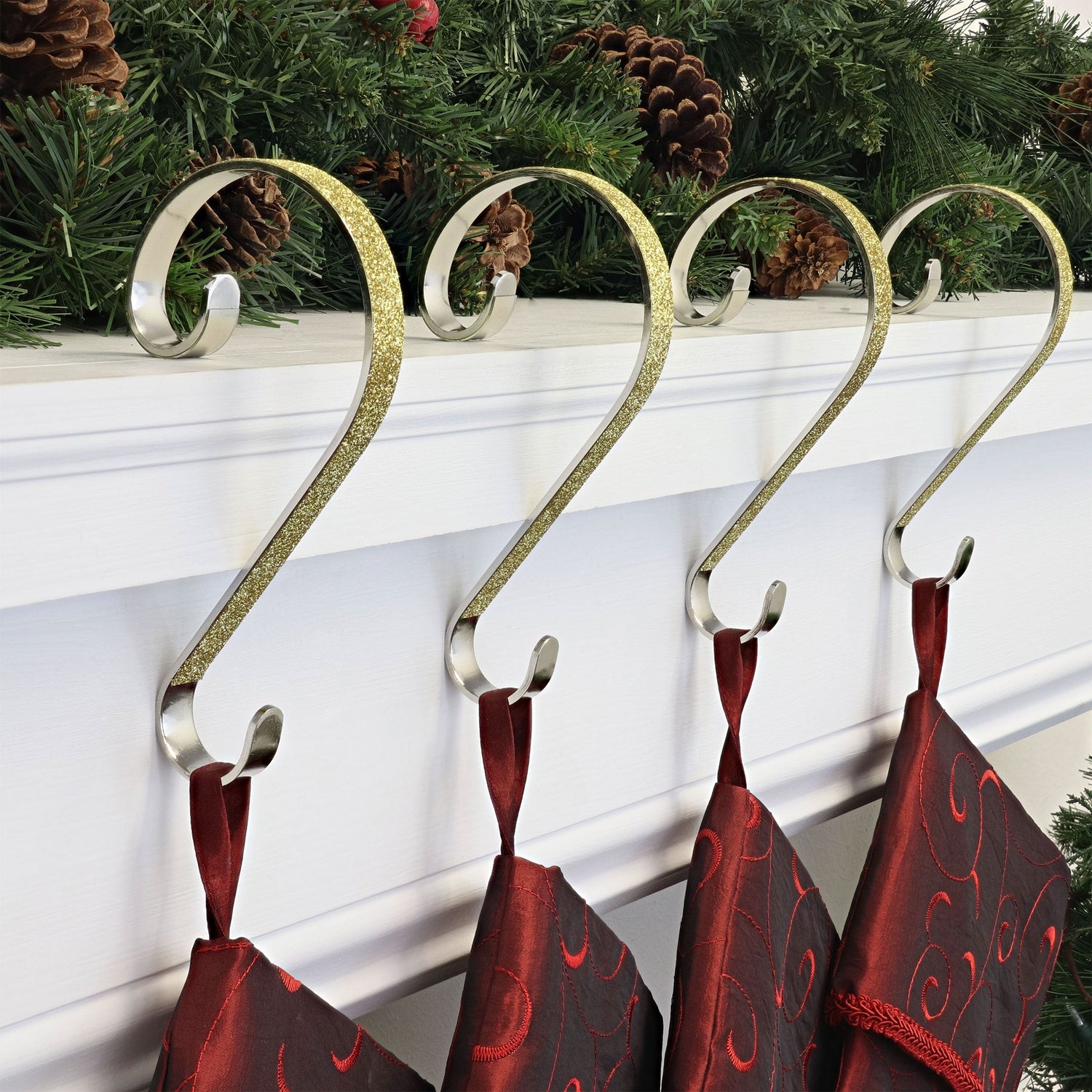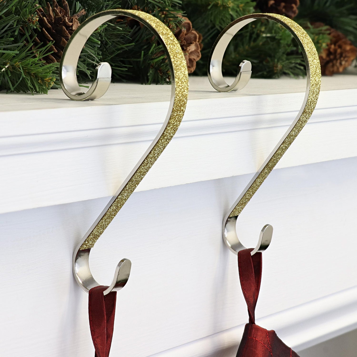 A very ornate yet also functional stocking holder, Stocking Scrolls have the capability of holding a full stocking on a wide variety of fireplace mantel styles. They have a gripper pad to prevent scratches and help hold it in place. This product's ability to swivel will allow it to fit almost any sized mantel. Lightweight design is safer for homes with children, versus heavy, counter-balance stocking holders. Won't interfere with other holiday decor on the top of mantel.